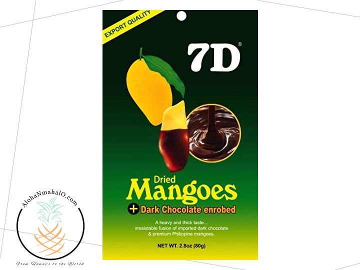 7D Dried Mangoes Dark Chocolate enrobed - 2.8oz (80g) bag