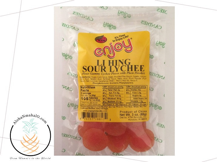 Enjoy Hawaii Li Hing Mui Sour Lychee Gummy Candy 3 oz. Bag